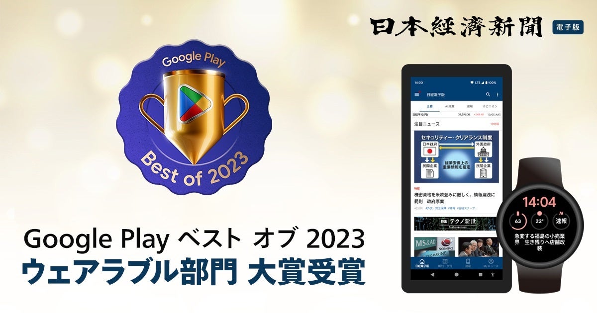 日経電子版アプリ、Google Play ベスト オブ 2023「ウェアラブル部門」大賞を受賞