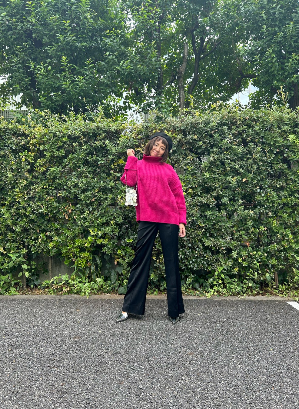 “そろそろふわふわニットが心地よい季節に。クロップド丈のニットはアルパカ混だからふわふわ♪”