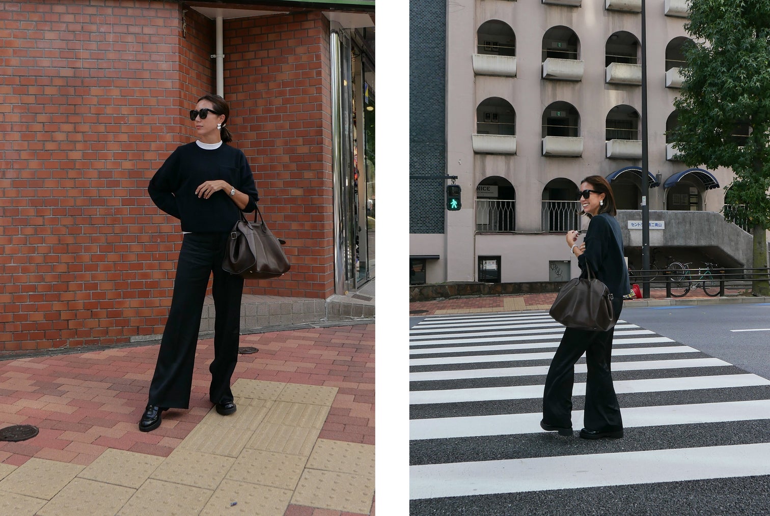 “カシミアニットはシルエットもデザインも完璧。胸ポケがかわいい。ブラックコーデを格上げしてくれます。” By JURI さん/ @juri1104