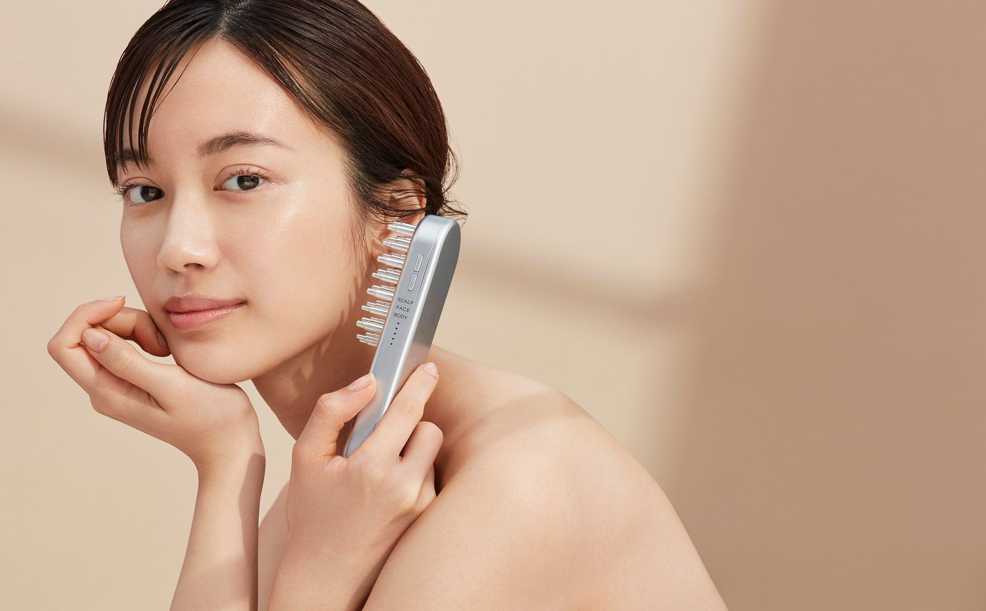 そんな悩みに対して、"BEAUTY is SIMPLE" をコンセプトに掲げるSALONIAは、たった1本で頭皮からフェイス、ボディまでそれぞれの部位に適した、独自に組み合わせた電気刺激で、全身の筋肉にアプローチができるハリ美容デンキブラシを開発しました。
