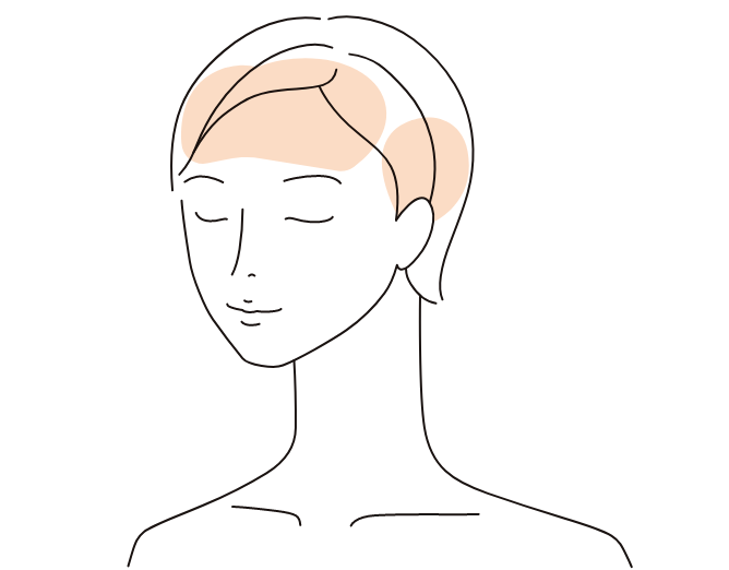 頭皮と顔は前頭筋と側頭筋という2つの筋肉でつながっています。側頭筋は目尻やほほ、輪郭の皮膚を支えていて、側頭筋がゆるんでくると、顔のもたつきの元にもなります。