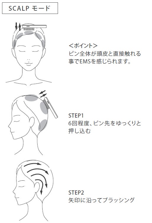 頭皮にピンを押し込み、その後ブラッシング。