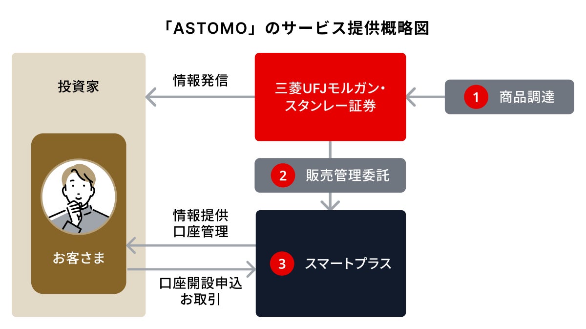 次世代金融インフラの提供を通して組込型金融を実現するFinatextグループの株式会社スマートプラス(本社:東京都千代田区、代表取締役:小林 紀子、以下「当社」)は、三菱UFJモルガン・スタンレー証券株式会社(本社:東京都千代田区、取締役社長:小林 真、以下「三菱UFJモルガン・スタンレー証券」)に対し、証券ビジネスプラットフォーム「BaaS(バース:Brokerage as a Service)」のセキュリティトークン(以下「ST」)※1取引機能を提供し、2025年10月09日(木)より共同運営によるデジタル証券取引サービス「ASTOMO(アストモ)」を開始いたします。