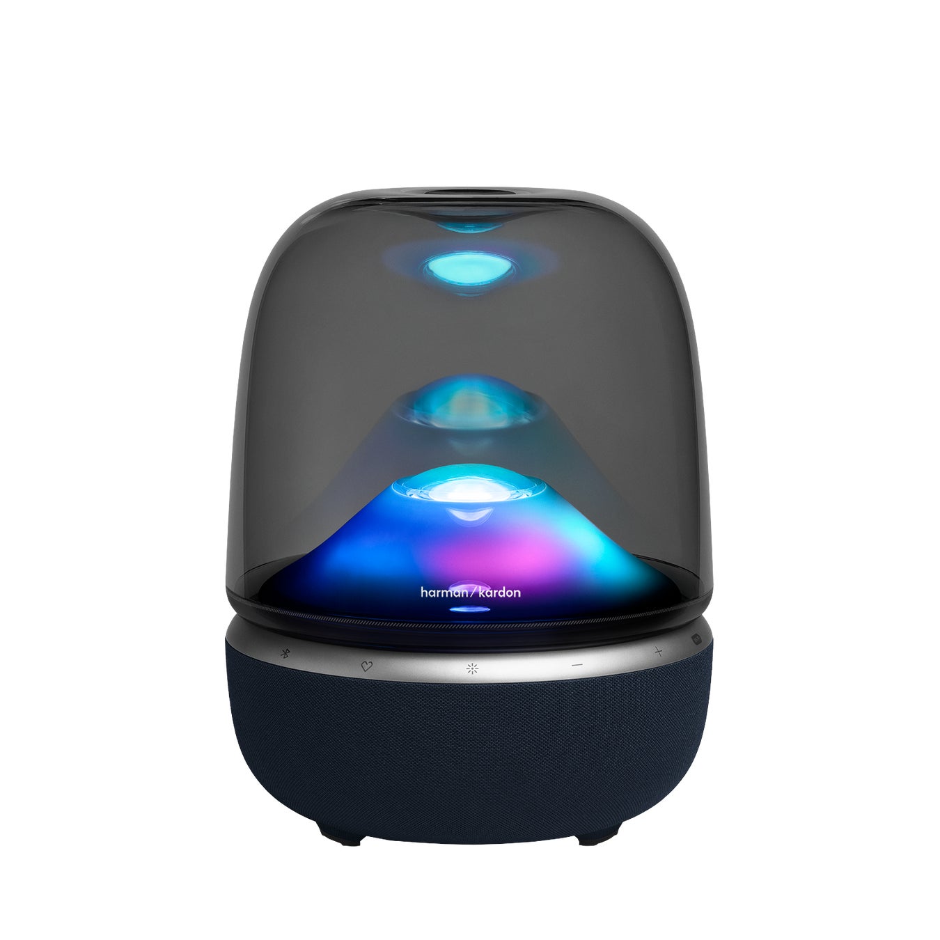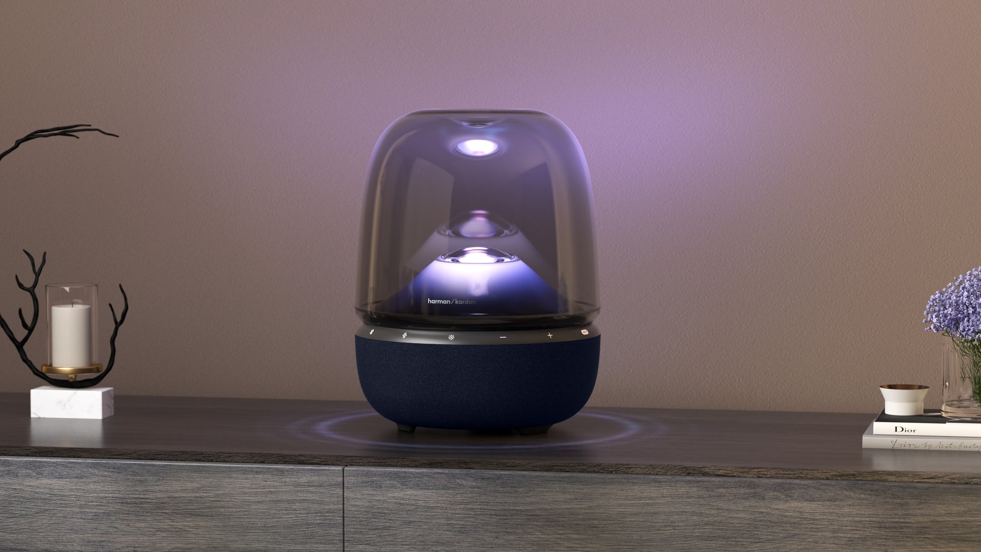 また、すでに市場にて好評いただいているライティングテーマに、本モデルだけの「ネビュラ」パターンを追加。7つのライティングテーマでお部屋や気分に合わせ心地よい雰囲気を演出することが可能なほか、「Harman Kardon ONE」アプリに対応し、明るさやライティングパターンなど細かい設定も簡単に操作可能。テーマに合わせたアンビエントサウンドも再生可能です。