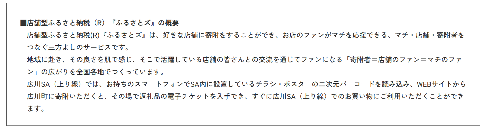 E3 九州自動車道 広川SA(上り線)で新しいふるさと納税サービスを開始します!