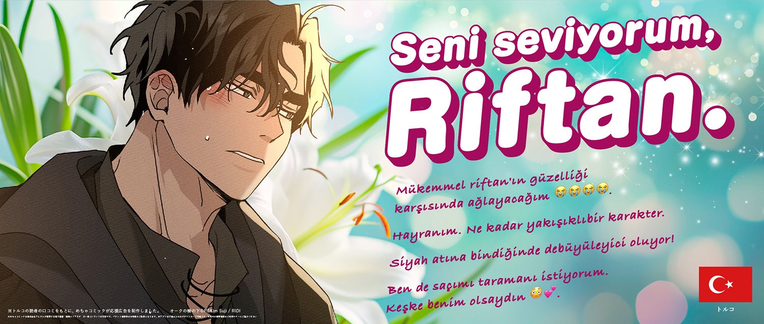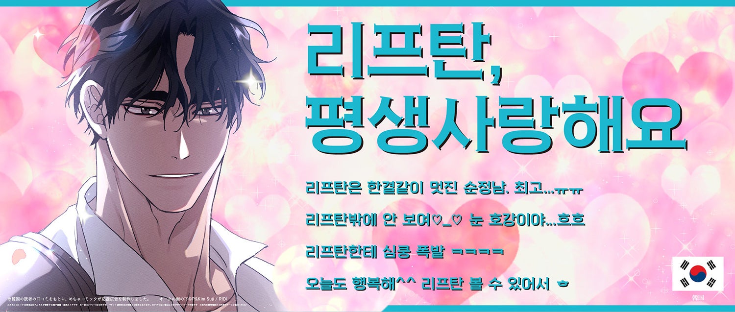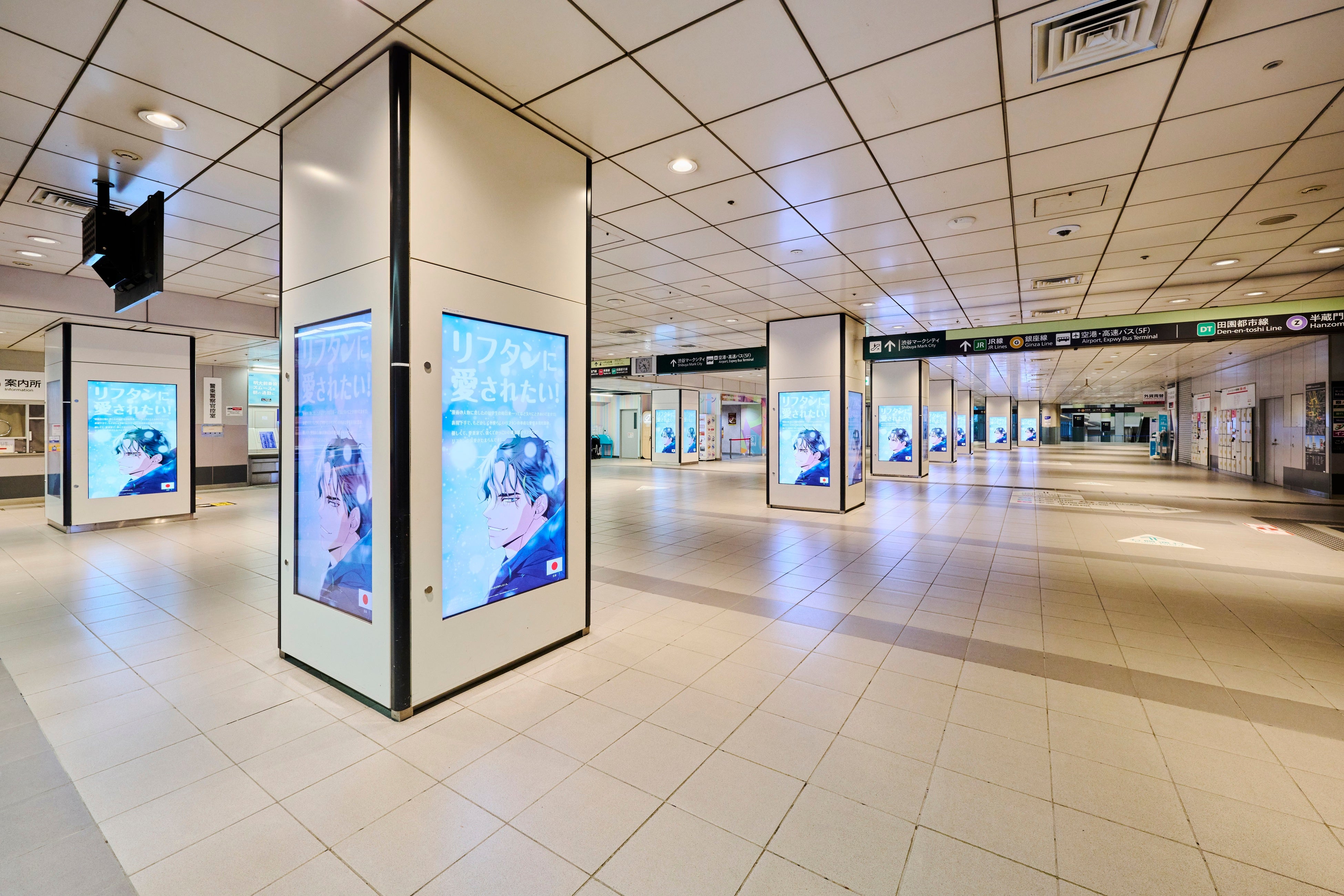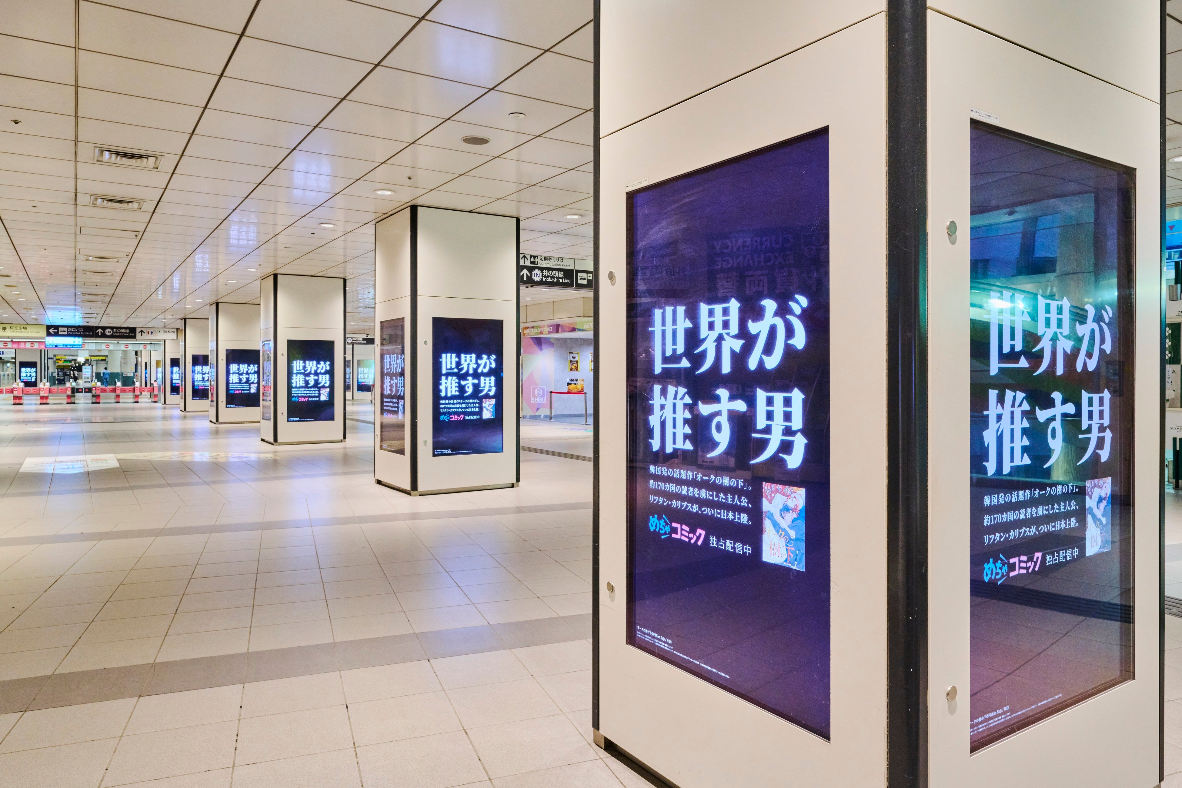 韓国発の本作にちなんで、韓国の”推し文化”である「応援広告(通称:センイル広告)」を模したデザインで、日本をはじめとする世界10か国の読者の実際のレビューをもとに、主人公「リフタン・カリプス」への「応援広告」として制作しました。東京メトロ丸ノ内線「新宿駅」のメトロプロムナード約80mの広告ジャックをはじめ、都営大江戸線「六本木駅」のエスカレーターと京王井の頭線「渋谷駅」の改札をジャックします。