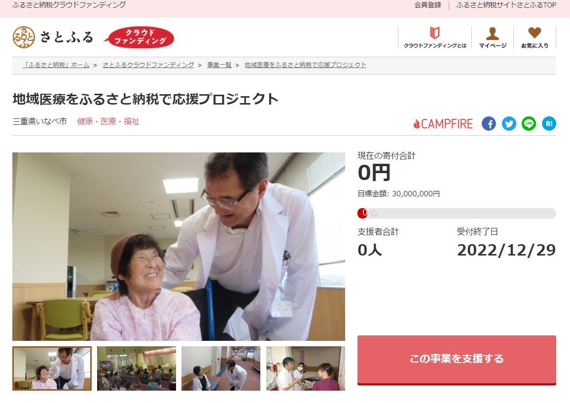 事業名:地域医療をふるさと納税で応援プロジェクト