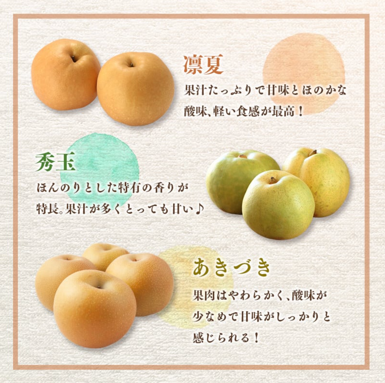収穫時期に1番美味しい梨を厳選するため、品種の指定はできません。