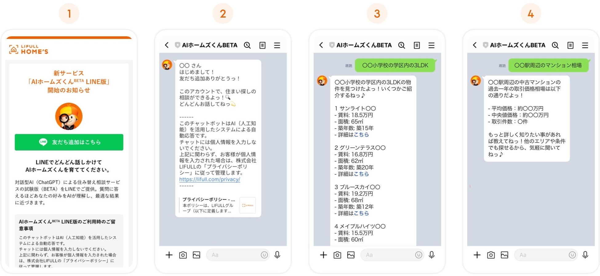 ●生成AI技術を活用し、LINEで24時間いつでも住み替え相談ができる「AIホームズくんBETA LINE版」