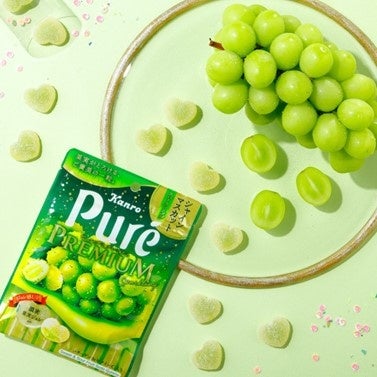 大好評を受け、この度「ピュレグミプレミアムシャインマスカットスパークリング」を定番商品として展開いたします。より贅沢な味わいをお楽しみいただけるよう、センタージュレを増量し、溶け出すジュレと果肉食感グミのふたつの食感が楽しめる“ご褒美の一粒”に仕上げました。