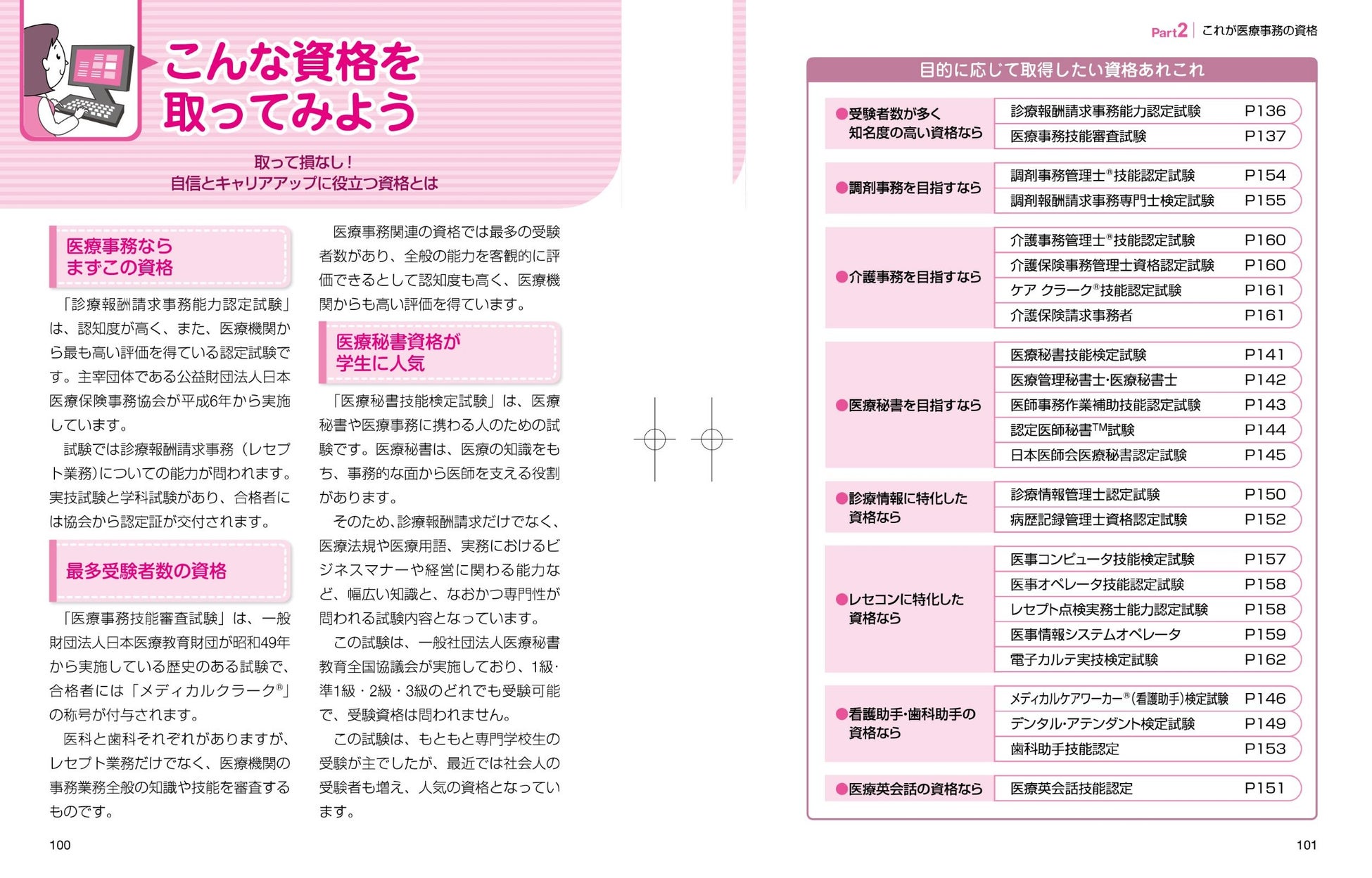 また、必要とされる資格についても、その内容や受験方法をはじめ、勉強方法も解説していますので、医療事務職を目指す人にとって打ってつけのガイドブックです。