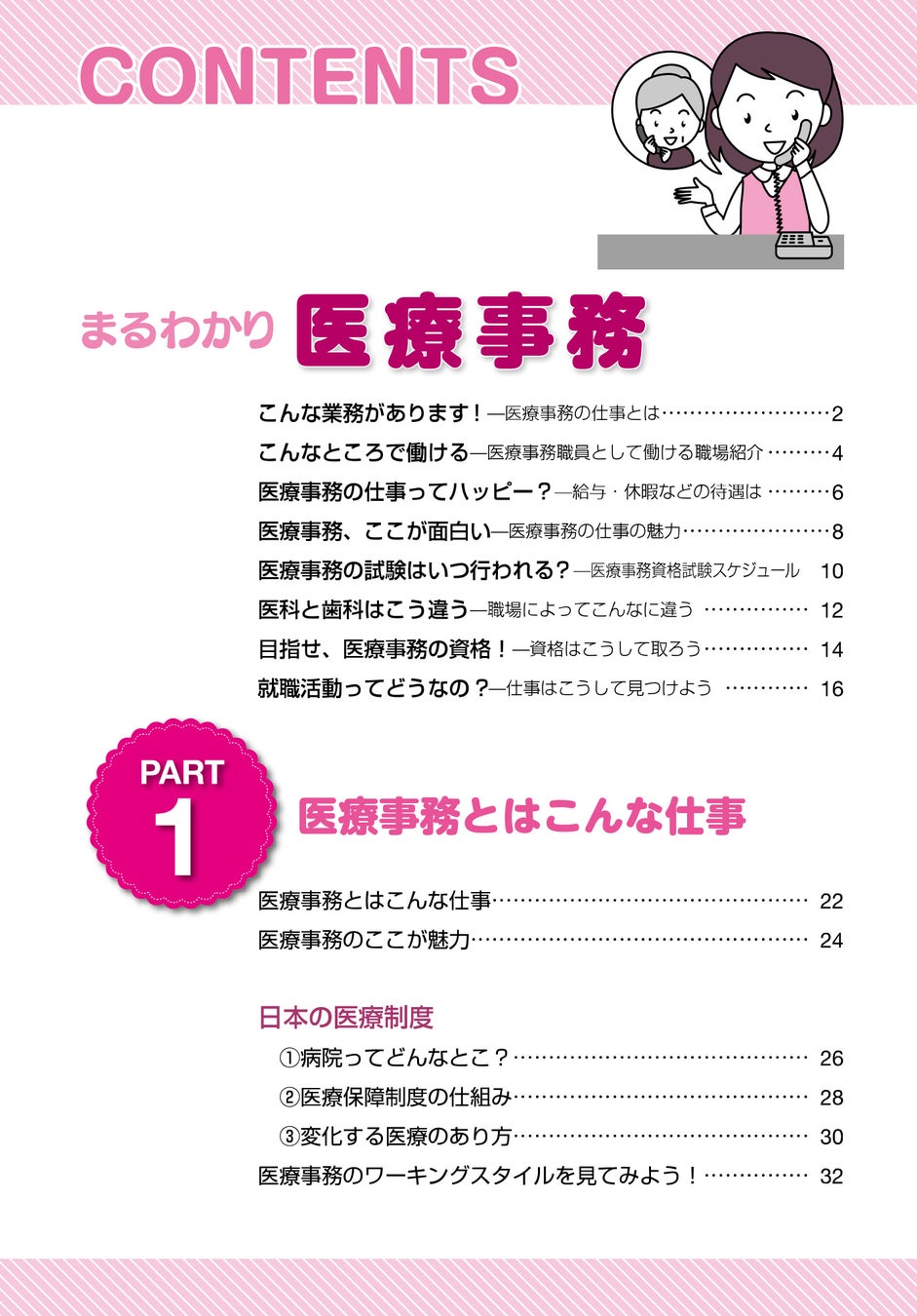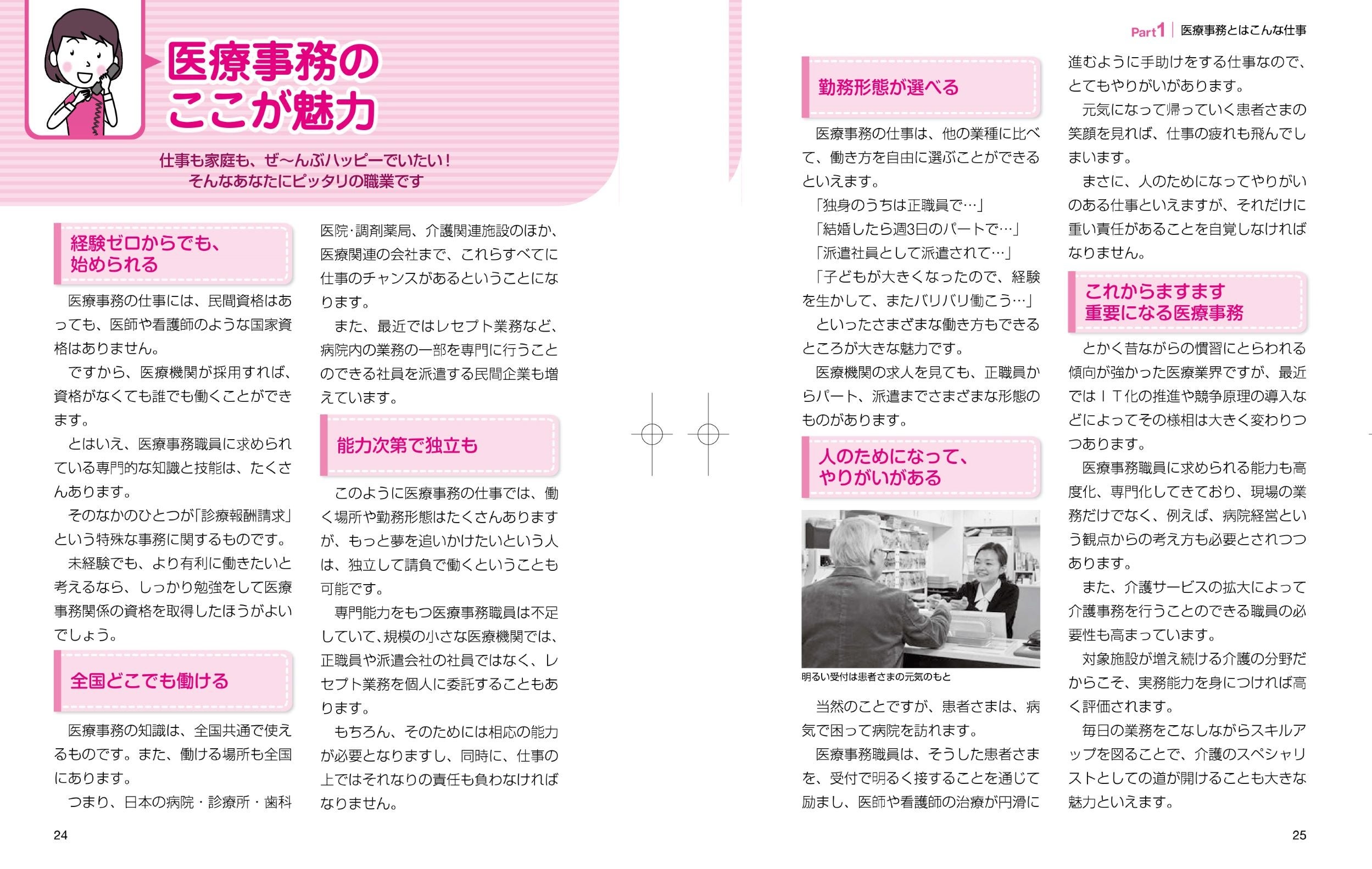 受付業務からレセプト業務、医師事務作業補助業務など、医療事務の実際が、現場で働く人たちへの取材でリアルにわかります。