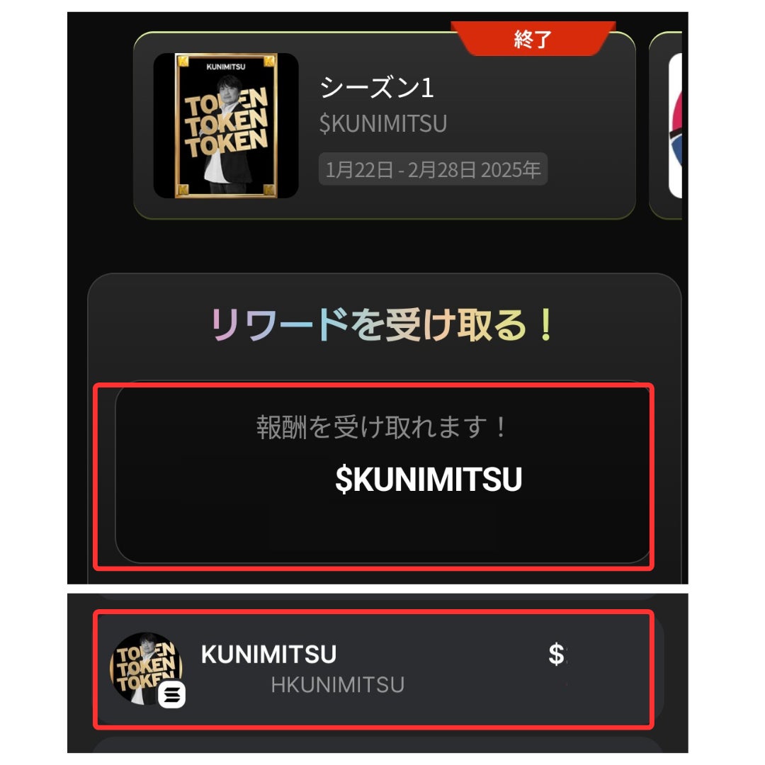 シーズン1で話題となった『国光トークン』($HKUNIMITSU)をホールドしたユーザーが対象です。