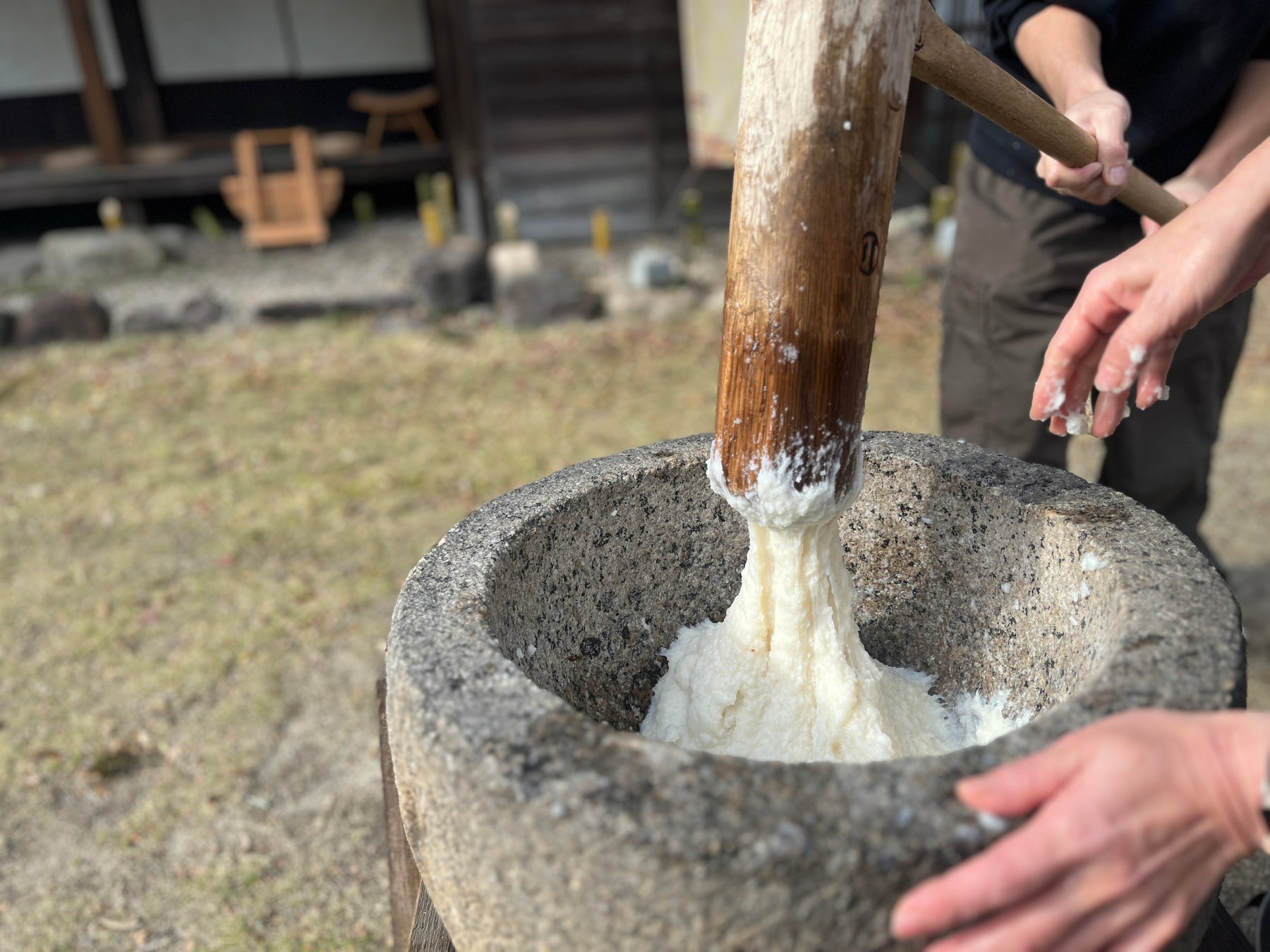 石臼と杵を使った昔ながらの餅つき体験で、世代を超えた思い出づくり