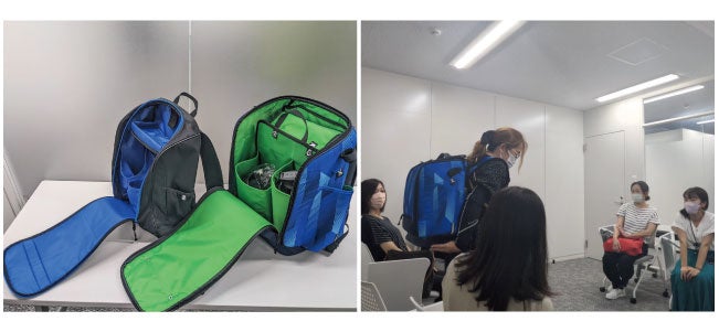 第2回目座談会では、初回ヒアリングした意見を踏まえた試作品をお持ちし、意見交換とフィードバックを行いました。座談会参加者の皆様は、実際に試作品を手にしていただいて、背負ってみたり、デザイン、機能、容量、価格帯に関して更に具体的な要望やアイデアが議論され、盛り上がりを見せました。