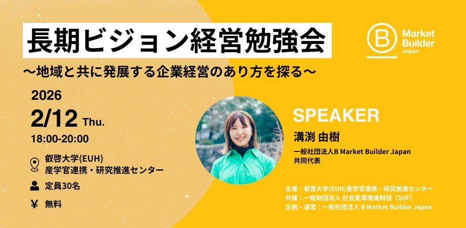 こうした中、「B Corp」という国際認証が、俄かに注目を集め始めています。本イベントでは、国内外のトレンドや事例の紹介と、自社の価値を整理・共有するワークショップを通じて、地域企業がすでに持つ価値をあらためて捉え直し、売上や利益の最大化にとどまらず、自然環境や地域社会との調和を通じて、企業価値の持続的向上を目指す経営のあり方を探ります。