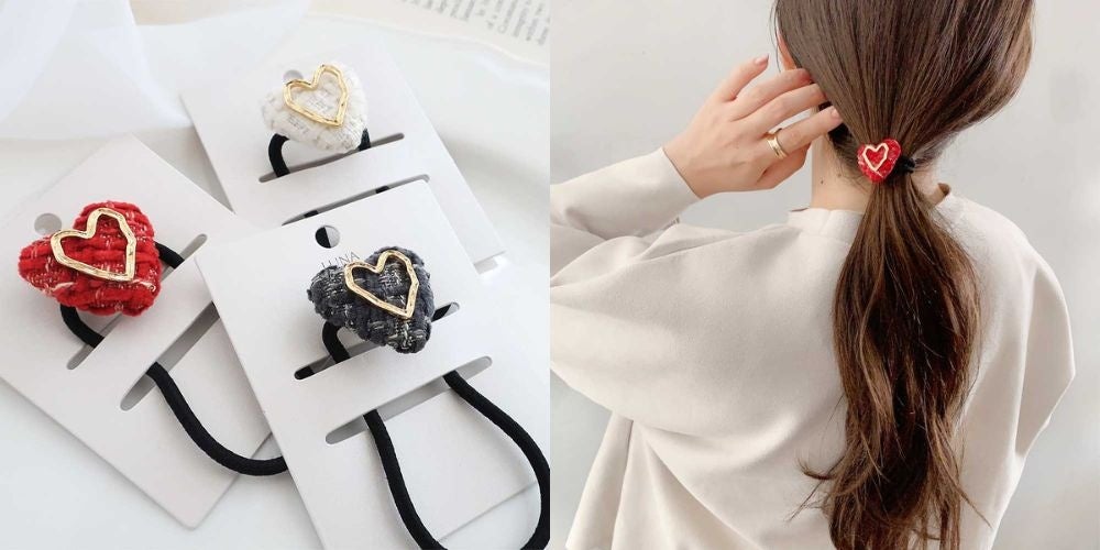 商品名:ツイードハートゴムポニー