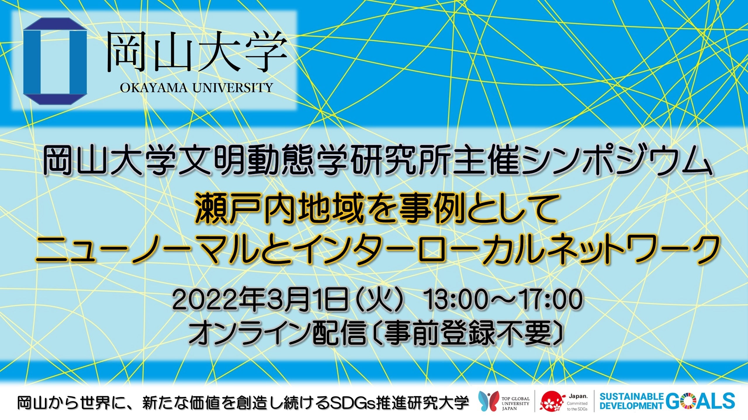 【岡山大学】文明動態学研究所主催シンポジウム「瀬戸内地域を事例として ニューノーマルとインターローカルネットワーク」〔3/1,火 オンライン配信(事前登録不要)〕