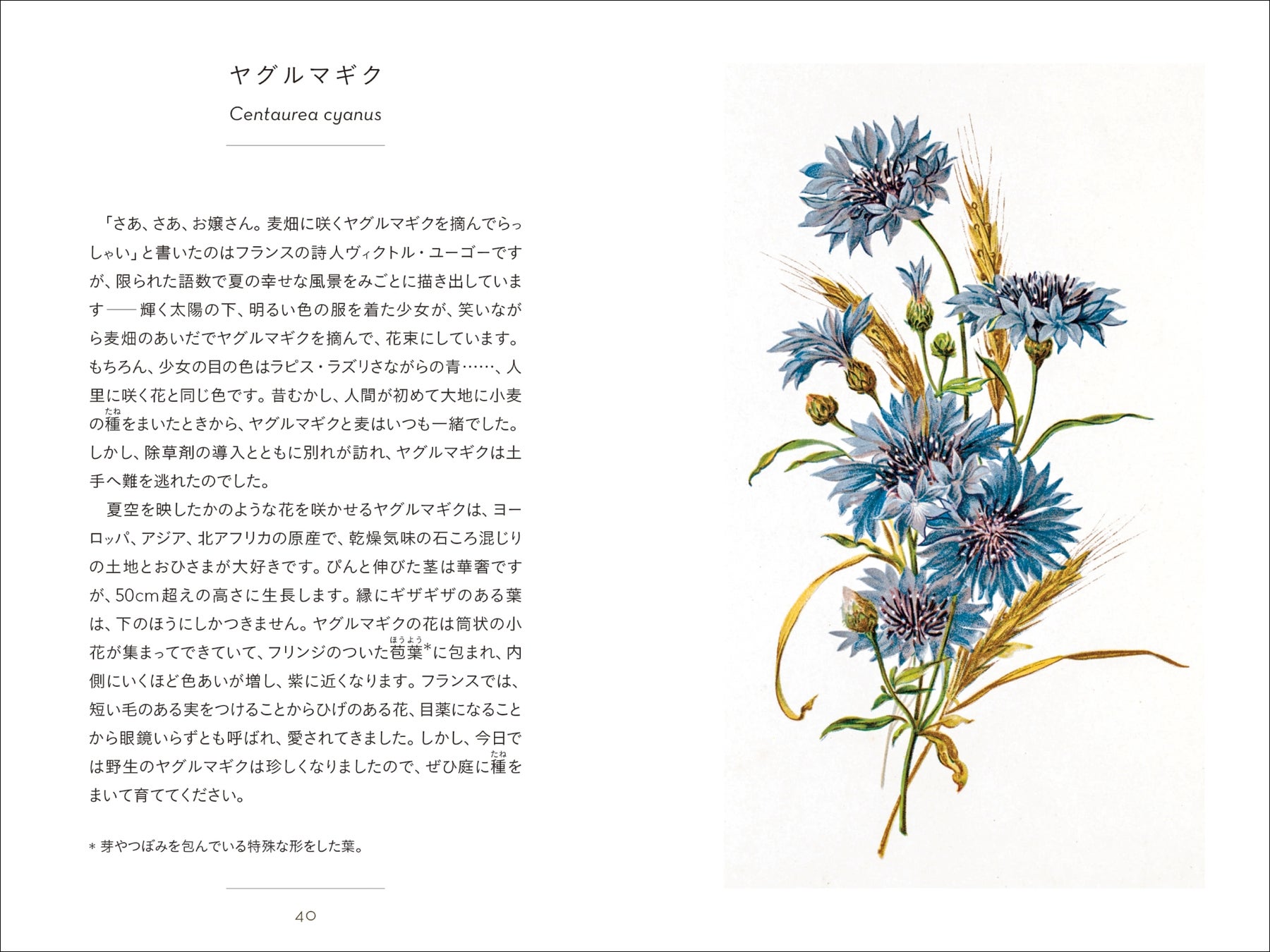 特性や原産地などの基本的な情報だけでなく、古代にまで遡る歴史や神話のエピソード、魔術との関連まで、野に咲く草花の魅⼒を多⽅⾯から解き明かします。