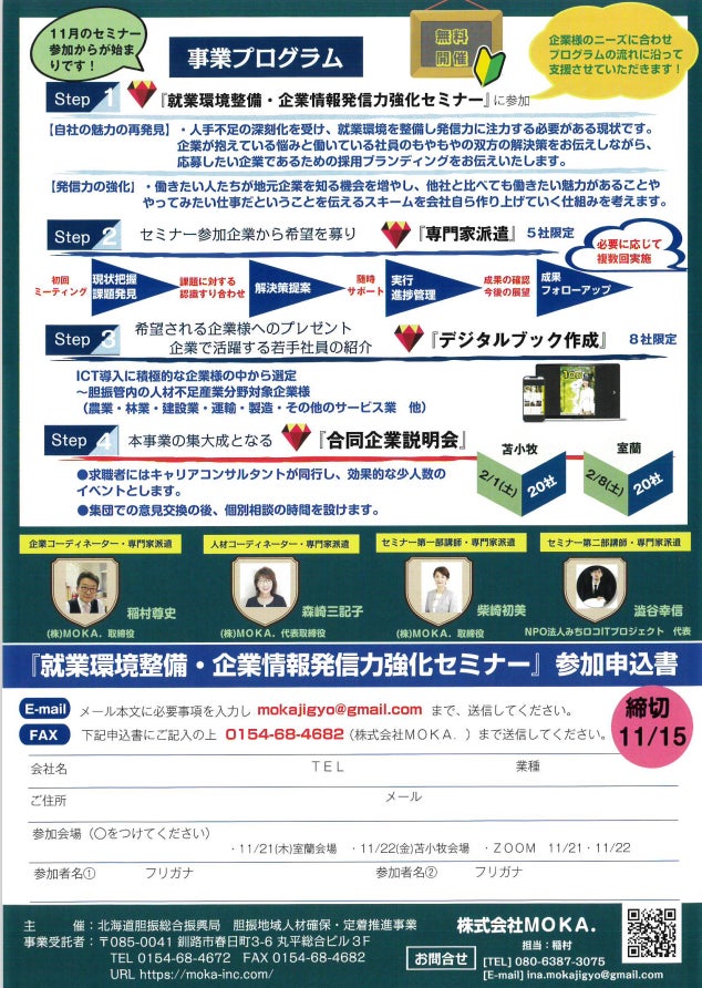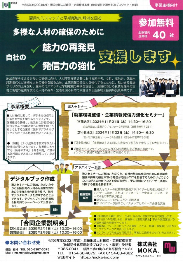〈お問い合わせ先・申込先〉 株式会社MOKA.(事業委託先)