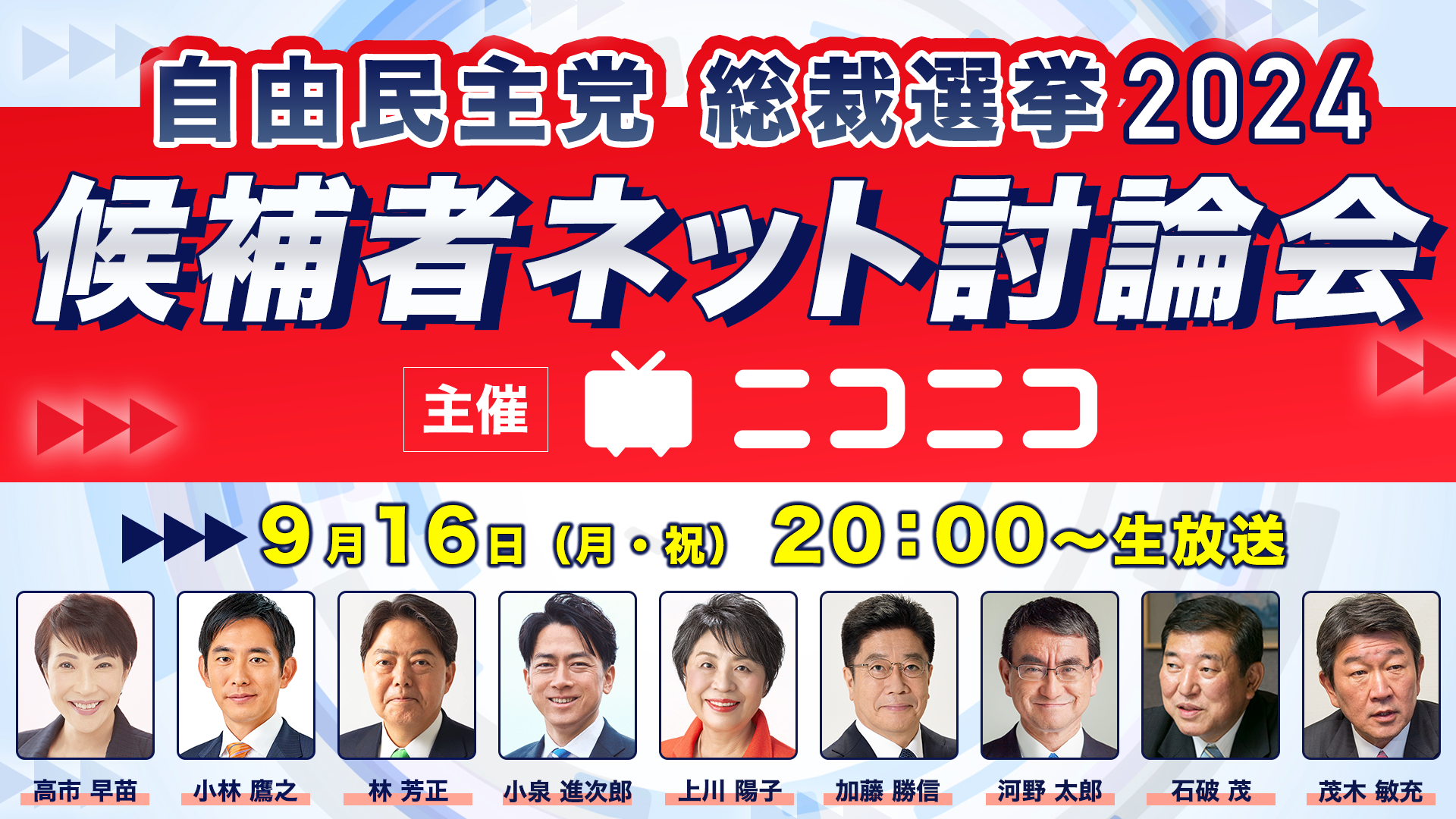 自由民主党 総裁選2024「候補者ネット討論会」ニコニコで開催決定 <日時:2024年9月16日(月・祝)20時00分~>
