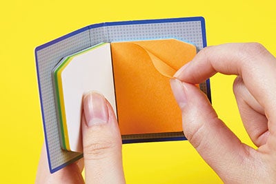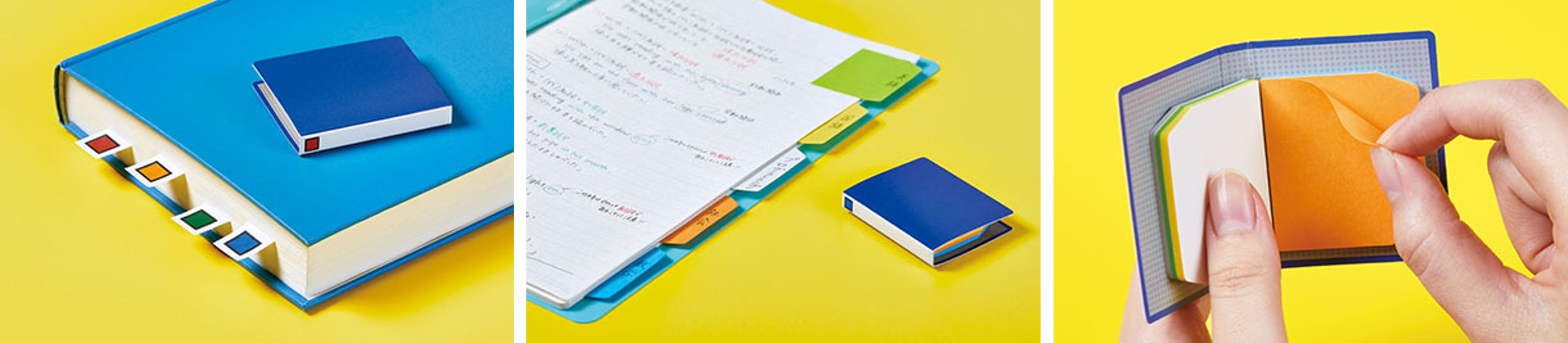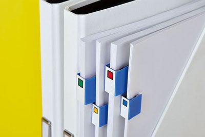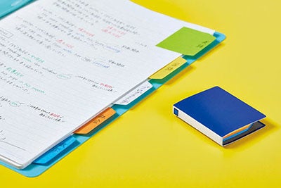 背見出しタイプは、キングファイルの背見出し紙と同じスクエアパターンがデザインされており、書類や本の目印に最適です。インデックスタイプは、キングファイルのインデックスをイメージしており、緑・黃・白・橙・青の5色のふせんをファイルやノートなどに貼って整理ができる仕様です。