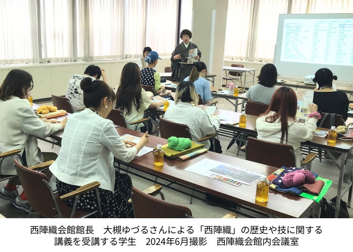 プロジェクトのキックオフとして、西陣織会館 館長を務める大槻ゆづるさんが、西陣織についての講演会を6月13日に実施。その後、工房の見学を行いました。学生の皆さんが西陣織を学び、触れる機会をつくることで、今までにない新しい発想の作品ができることを期待しています。
