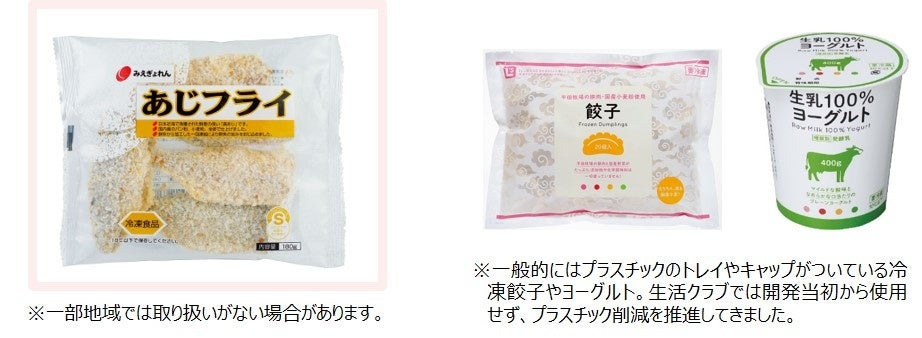 また、同じくプラスチック削減という点で、 2022年1月からは冷凍食品「あじフライ」の内袋に封入したトレイを不使用に、 2月下旬から容器にリユースびんを使用した「トマトパスタソース」の共同購入を開始するなど、容器包材のプラスチック削減に優先的に取り組んでいます。