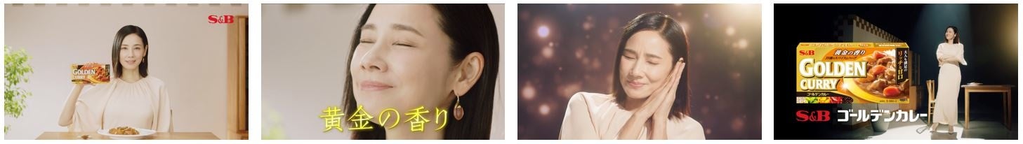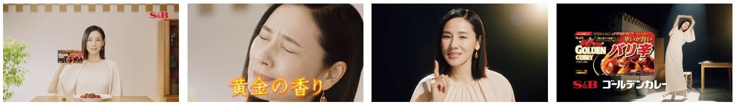 ゴールデンカレーを一口食べた吉田さん。その「黄金の香り」で女優魂に火がつき、全身を使っておいしさを表現します。辛さ(味種)ごと異なる動画で、より具体的にその特徴を訴求。それぞれの吉田さんの表情にも注目です。