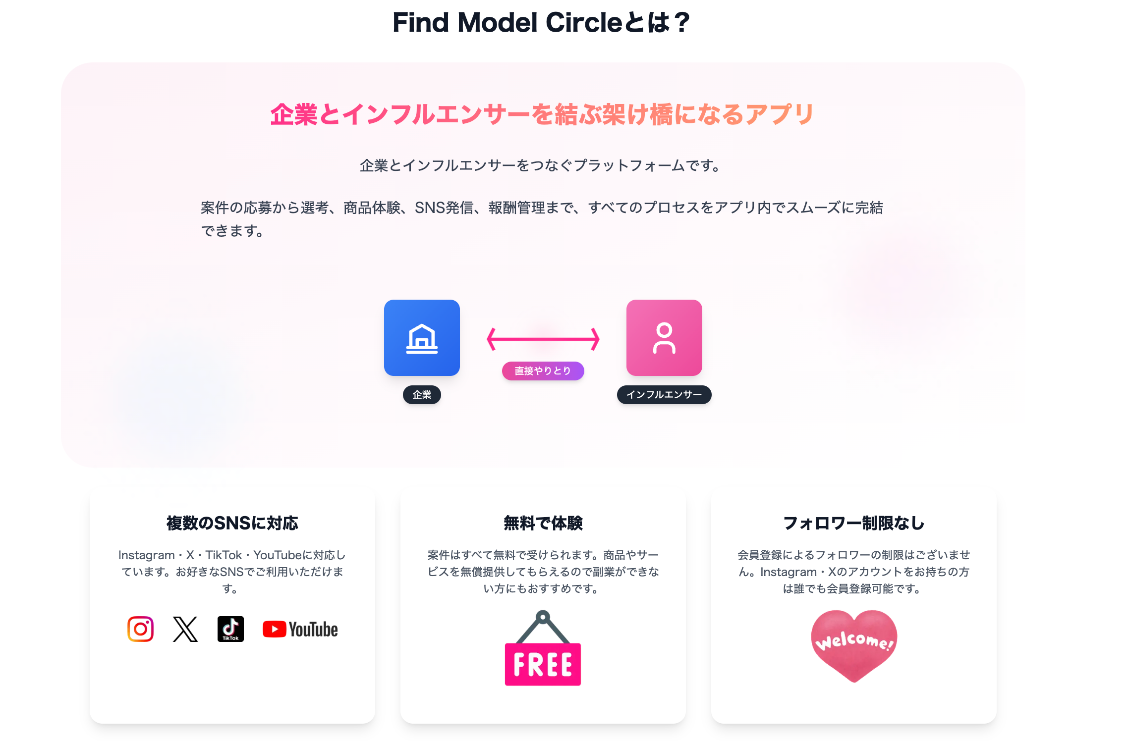 インフルエンサー様:https://circle.find-model.jp/influencer