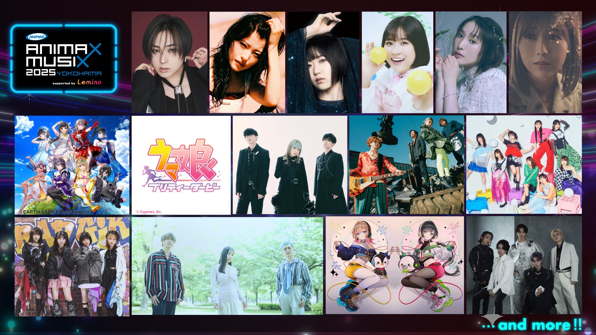 横浜公演にはウマ娘 プリティーダービーや南條愛乃、蒼井翔太など、多くの話題作・人気作品に携わるアーティストの出演が決定!また、HoneyWorks feat.ハコニワリリィ、中島怜など、初出演となる注目のアーティストも登場します。