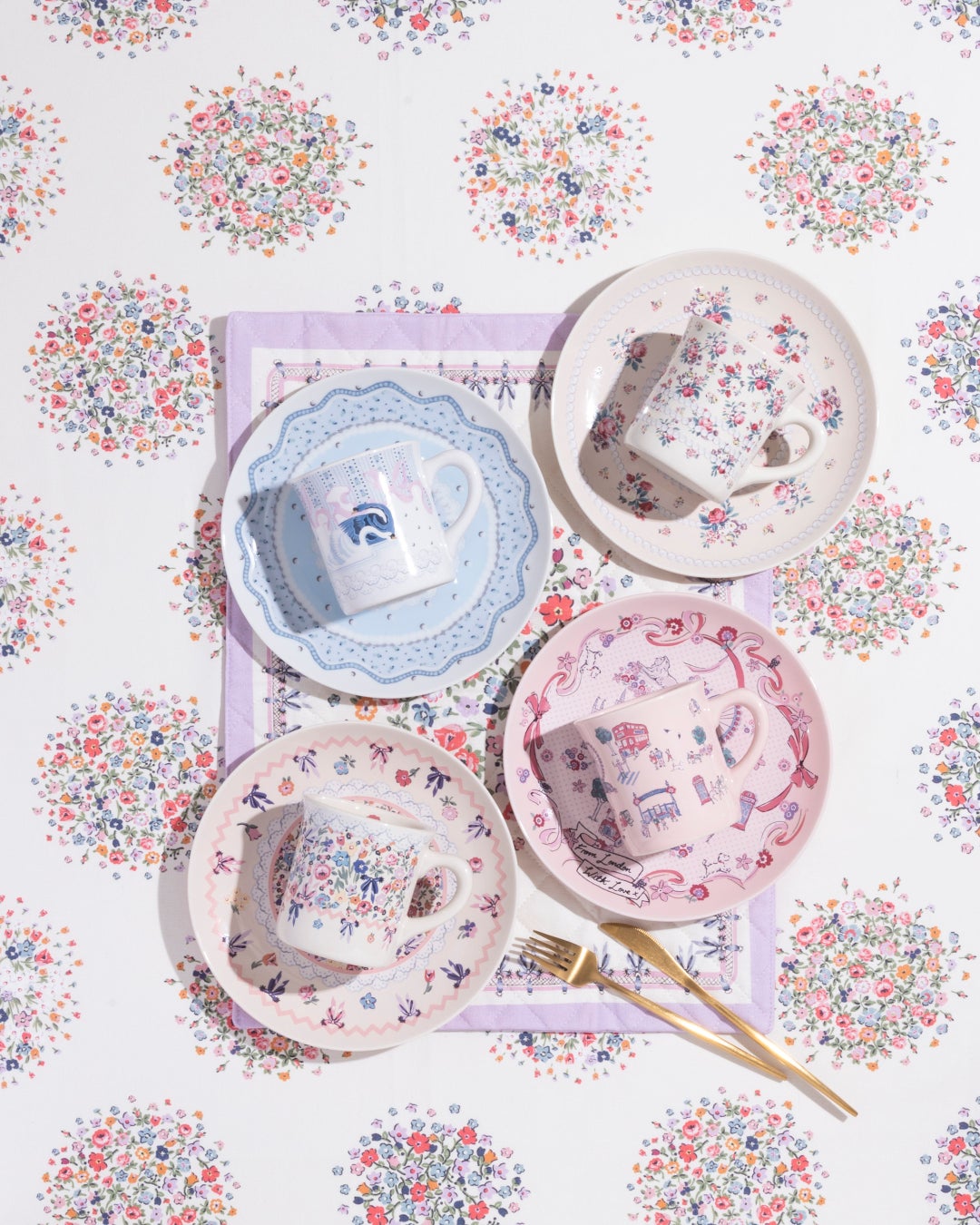 Cath Kidstonならではの繊細なアートが彩られた陶器のアイテムは2型登場。マグカップは、ぷっくり