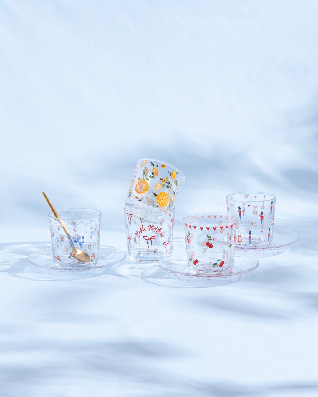 ◇グラスタンブラー Bows & Rose / Rose Miniature / Floating Cherry / Strawberry Garden / Royal Guards 各¥2,970(税込) 口径80mm x H83mm 225cc