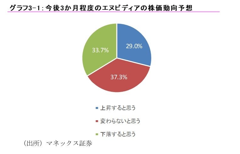 今後3か月程度でエヌビディア(NVDA)の株価がどう変化すると思うかをたずねました。