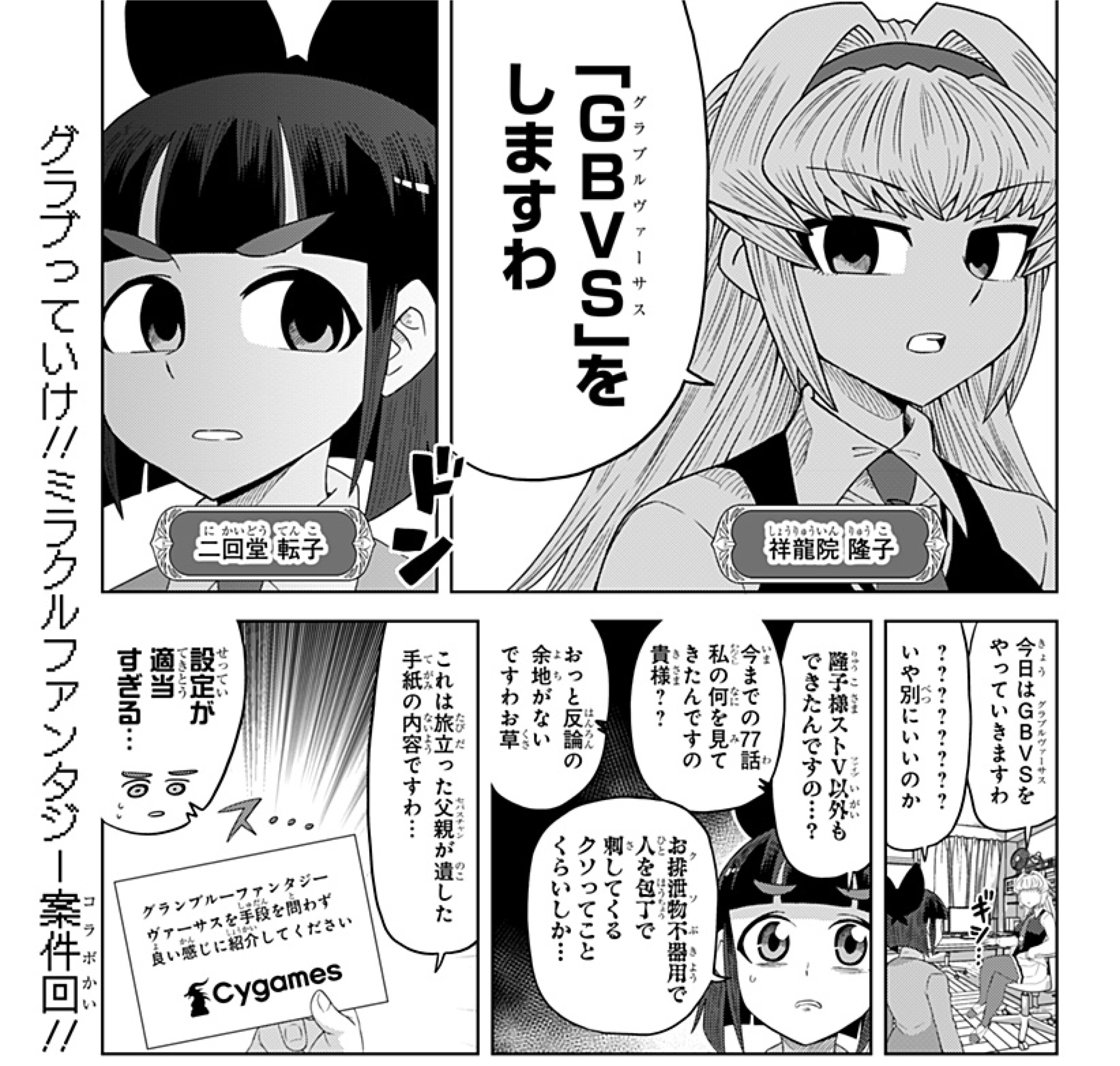 対戦アクションRPG『グランブルーファンタジー ヴァーサス』マンガ誌アプリ「少年ジャンプ+」にて、『ゲーミングお嬢様』とのコラボマンガが公開!