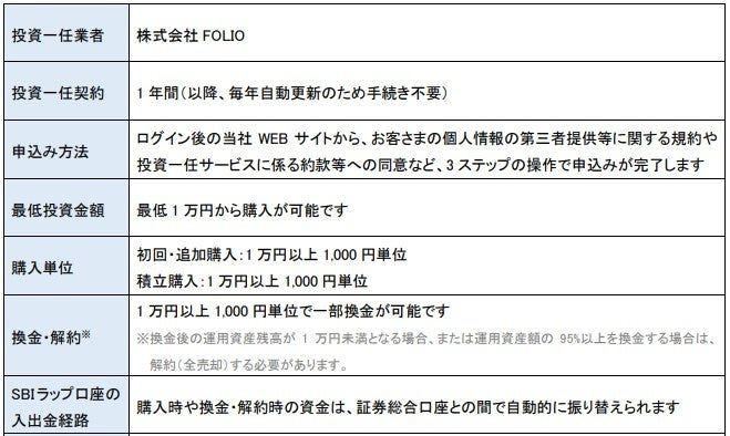 ■「SBIラップ」第1弾 SBI証券×FOLIOの投資一任サービスの主な特徴