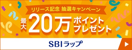さらに、サービス開始から2ヵ月間の取引を対象に「最大20万ポイントが当たるSBIラップスタート記念キャンペーン!」を実施します。