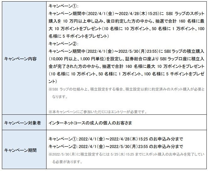 =最大20万ポイントが当たるSBIラップスタート記念キャンペーン!=