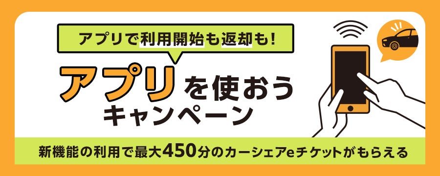 また、より多くの方に本機能を活用していただくため、6月29日から8月31日まで「アプリを使おうキャンペーン」を実施いたします。本キャンペーンは、iOS版※3およびAndroid版のタイムズカーアプリで車両を予約された方や解施錠機能をご利用いただいた方などを対象に、利用料金に充当できる電子優待券「カーシェアeチケット」をプレゼントいたします。