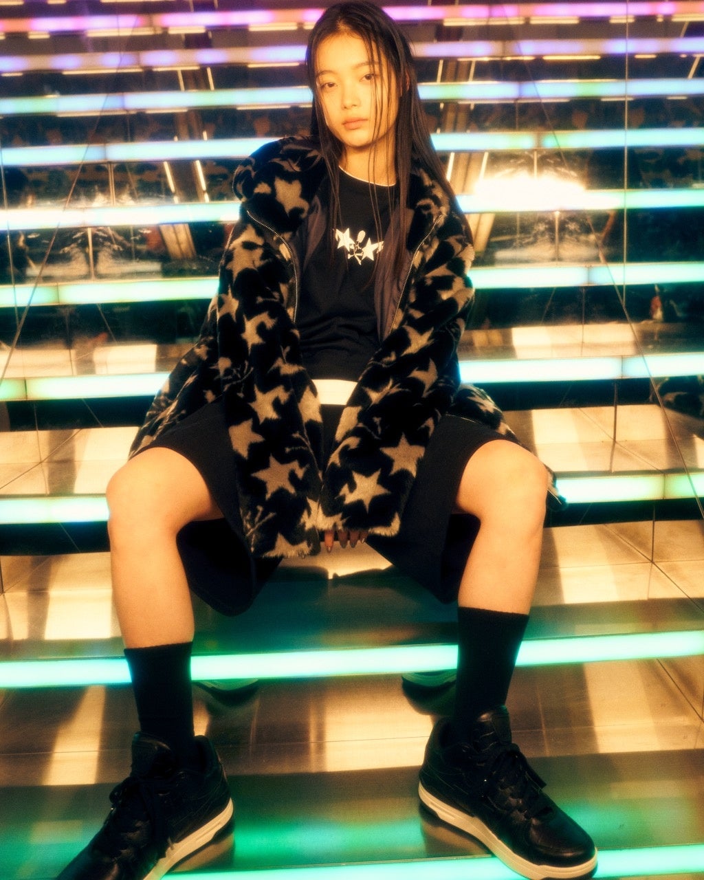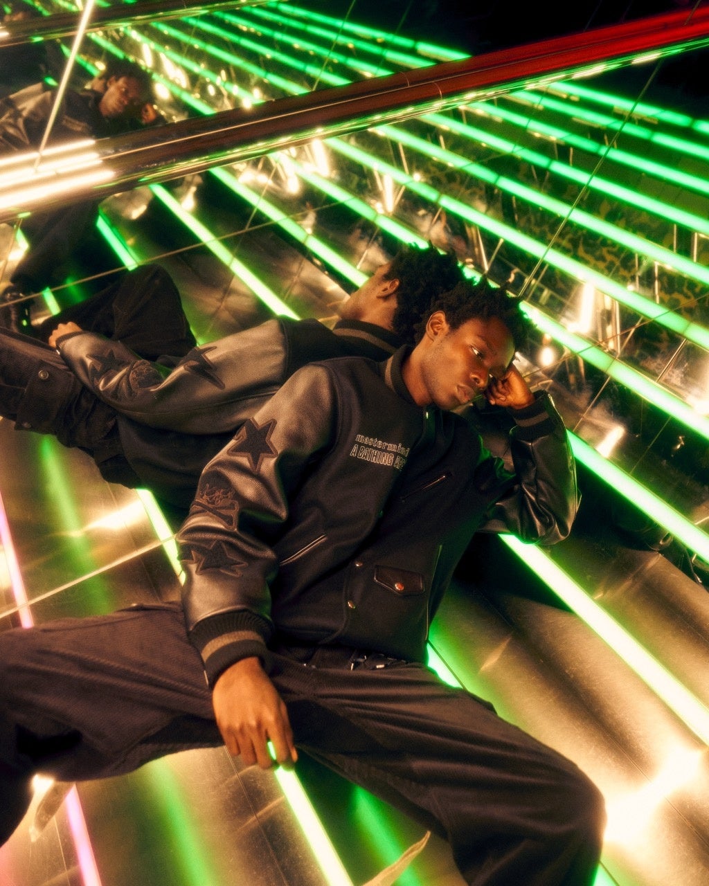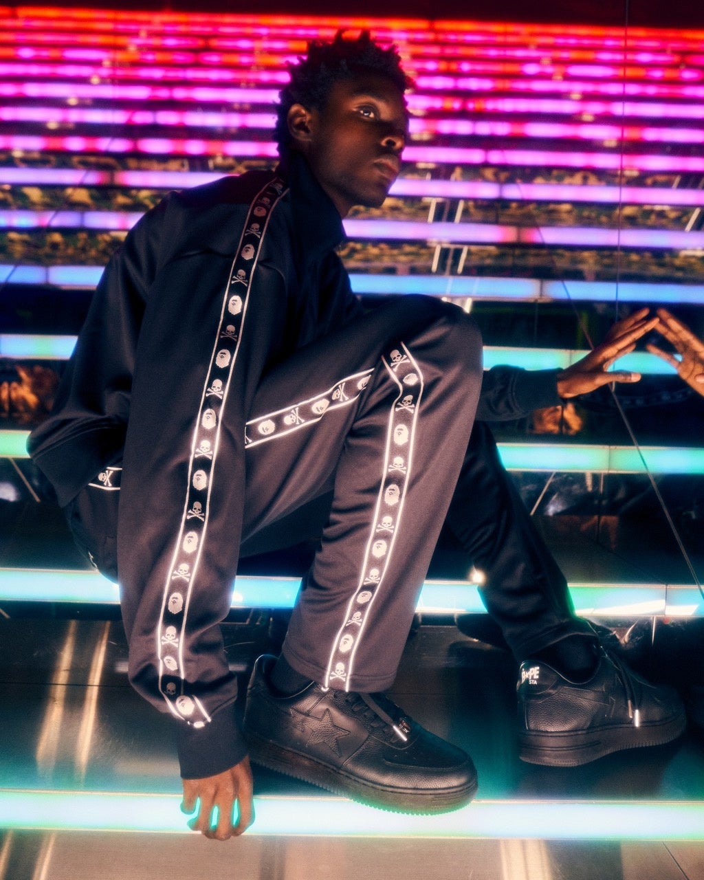 ビジュアル撮影は、BAPEXECLUSIVE™ AOYAMAで敢行。色とりどりのネオンが漆黒のコレクションを照らします。