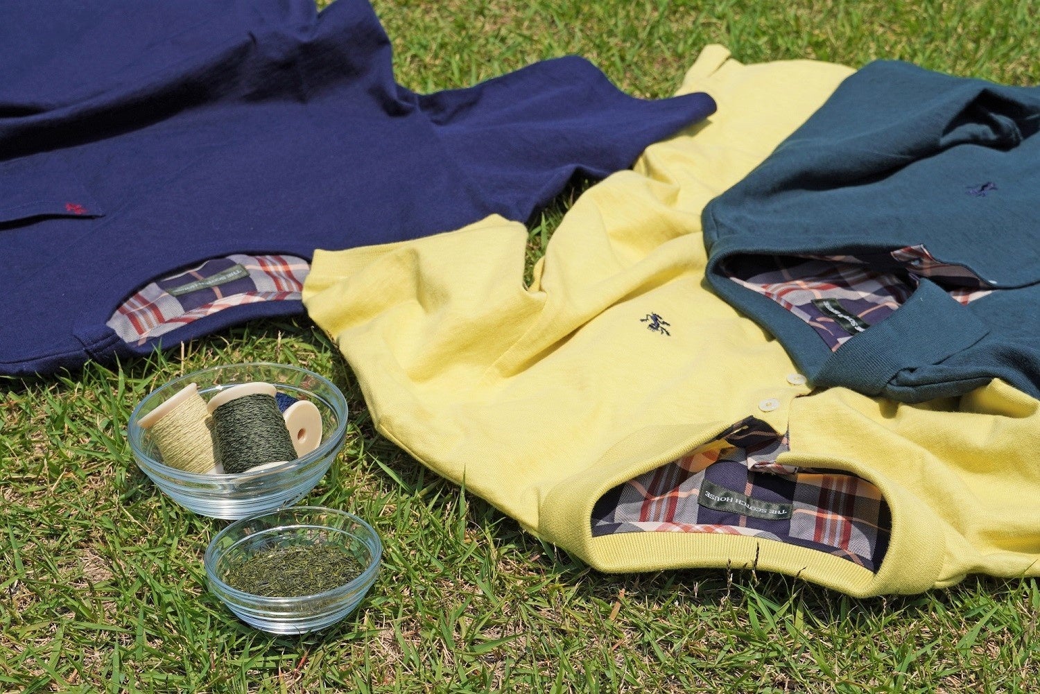 こうした背景を受けて、こだわりのある40代以上の大人の男性を中心に支持されてきた「THE SCOTCH HOUSE」では2021年春夏商品よりすべてのシャツとカットソーに抗菌・消臭効果のあるデオドラントテープを縫いつけることでお客さまのニーズに対応してきましたが、リサイクルポリエステルや環境残留性が高いフッ素を使わないはっ水剤を用いるなど、環境に優しい商品開発を進めてきたブランドの経緯を踏まえて伊藤園の独自技術である「茶殻リサイクルシステム」に着目し、汗ばむ季節に向けて環境負荷の低い抗菌・防臭アイテム”Tea+Wear”を開発することとしました。
