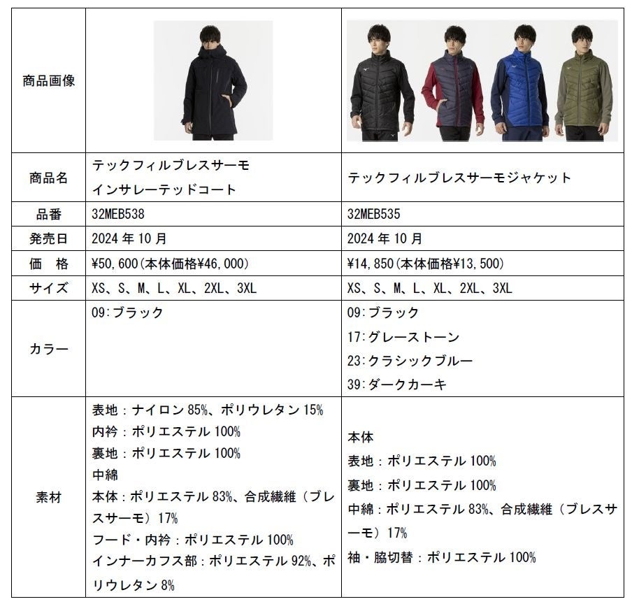 オフィシャルウエアのコートとジャケットのベースモデルは、ミズノ公式オンライン、全国のミズノ品取扱店で販売中です。