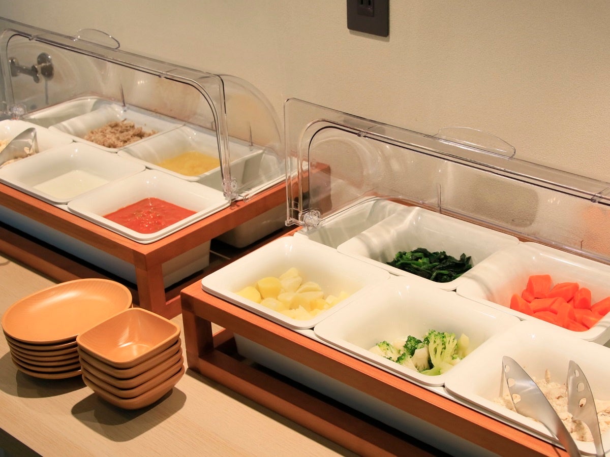 愛犬と同伴OKのレストランにて、ご夕食はお野菜たっぷりの健康お鍋を、朝食は和食をお召し上がりいただけます。また、愛犬専用ビュッフェもあり愛犬も退屈することなくお食事を愉しめます。