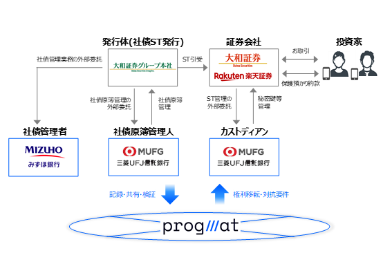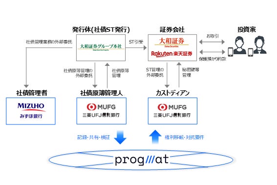 なお、本ST社債の発行においてはProgmat社がライセンス提供するデジタルアセット全般の発行・管理基盤「Progmat」を活用します。