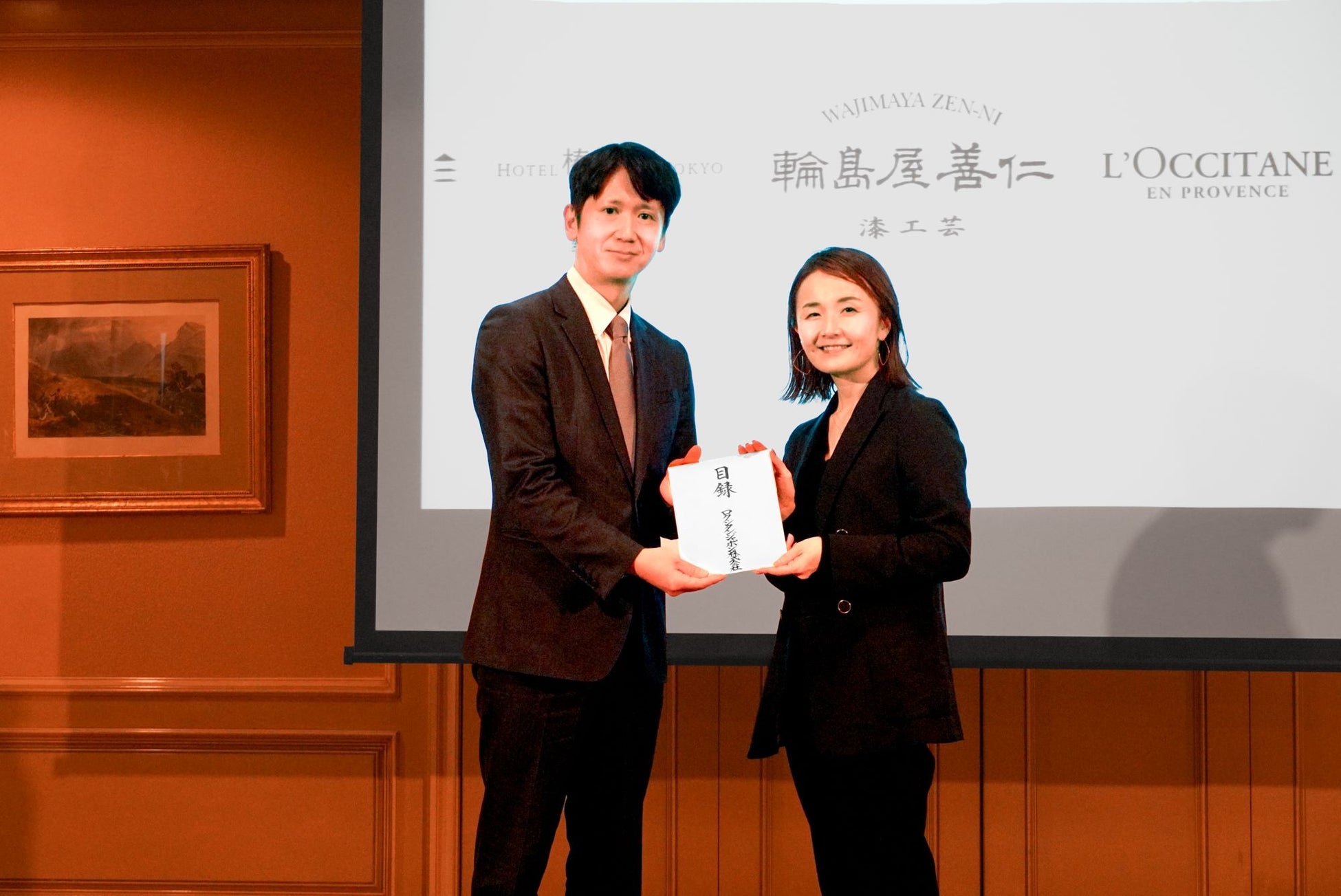 このたび、弊社の取り組みに賛同してコラボレーションイベントを実施したホテル椿山荘東京と共催で、1月10日株式会社輪島屋善仁への寄付贈呈式を行いました。贈呈式には株式会社輪島屋善仁の中室耕二郎社長、ロクシタンとの取り組みをサポートするNPO法人ウルシネクストの佐々木亨理事、中根多香子理事、ホテル椿山荘東京総支配人の千尋智彦氏、弊社社長の木島潤子、常務執行役員の福島麻名美が参加。弊社及びホテル椿山荘東京からの寄付金目録が中室社長に贈呈されました。