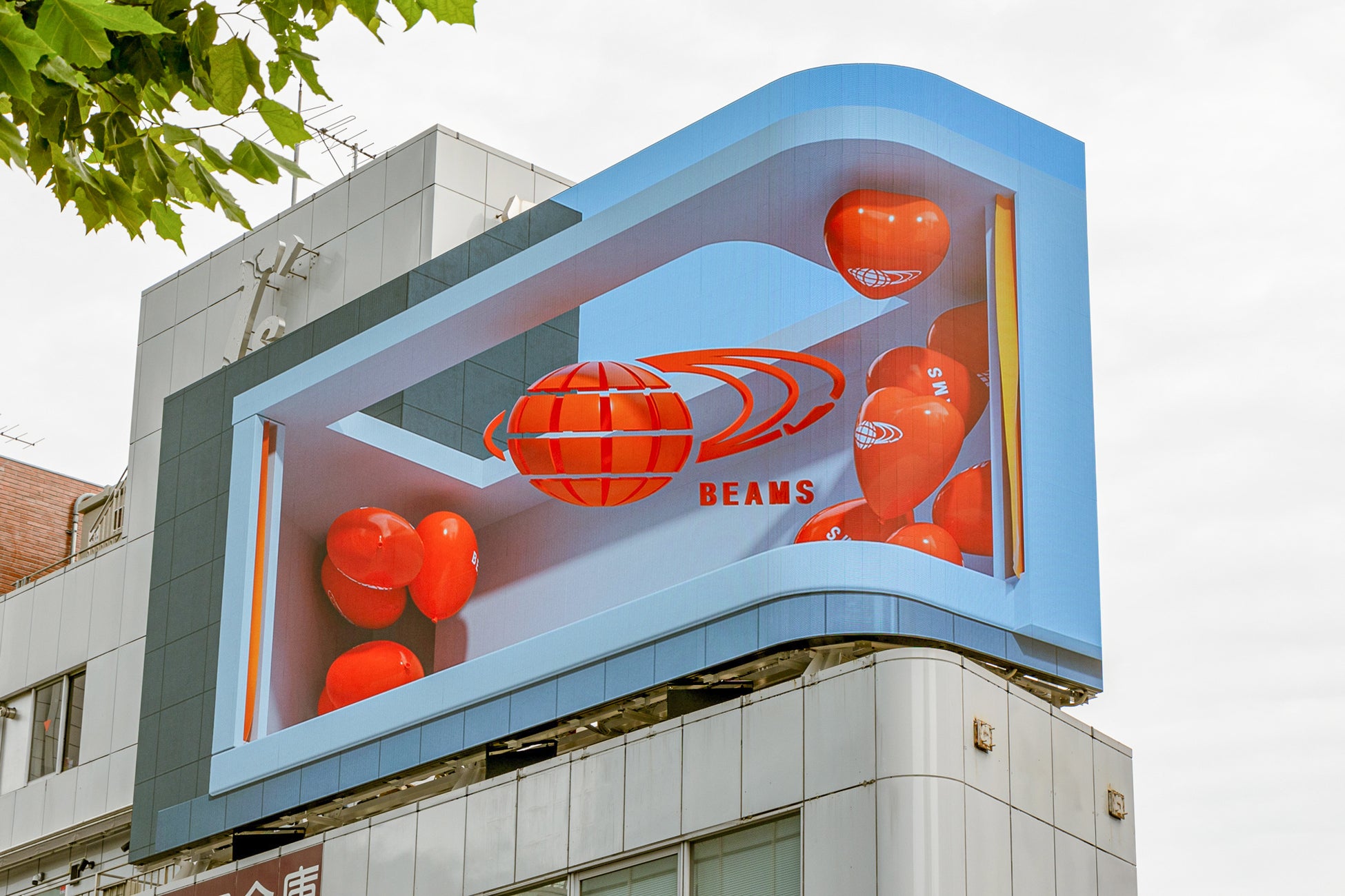 この度、ビームスが初めて裸眼3D映像のブランド広告を放映する大型屋外LEDビジョン《CHANGE ViSiON Harajuku》は、ビームス創業の地からほど近い、原宿の竹下通りと明治通りの交差点角地のビルの屋上に新設されたもので、クリエイティブカンパニーであるCHANGE ViSiON株式会社が運営します。