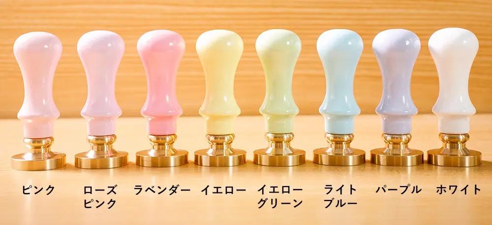 コロンとしたかたちが可愛い、女性の手でも持ちやすいハンドルはこちらの8色。ワックスはこちらの14色から選べます。