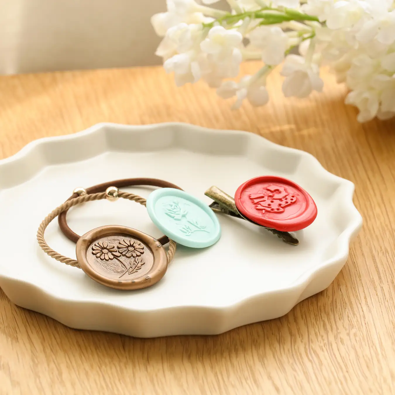 封かんとしてはもちろん、メッセージカードを飾ったり、ラッピングに使ったり、アクセサリーにしたりetc。制作したシーリングスタンプはこんなさまざまなハンドメイドに使うことができ、アデリアレトロのデザインを生かしたおしゃれな雑貨を好きなだけ作ることができます(※)。
