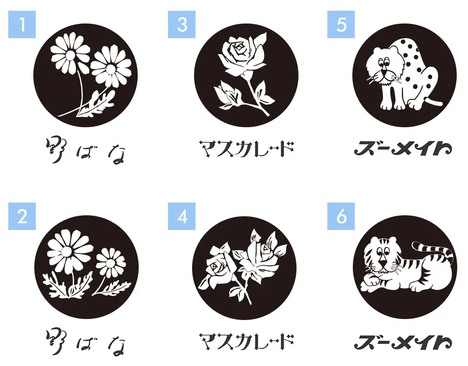 選べる印面デザインはこちらの6種類。アデリアレトロの中でも特にファンからの人気の高い「野ばな」や「ズーメイト」といったデザインが選べます。