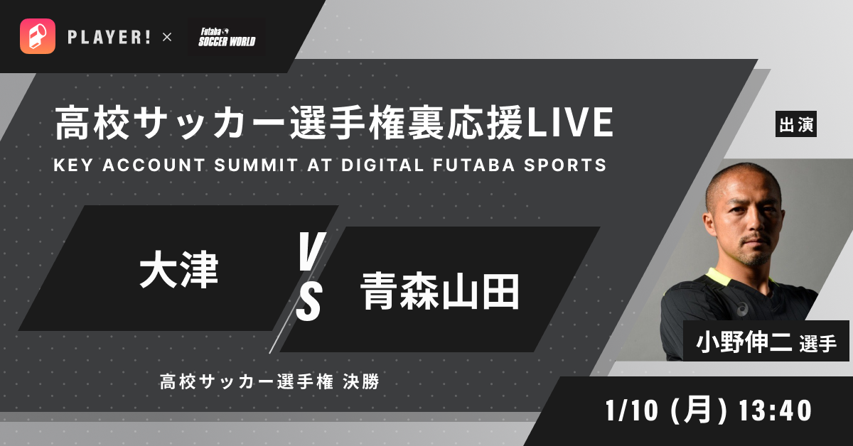 【小野伸二が登場!】フタバスポーツ協力のもと、高校サッカー選手権決勝戦、大津vs青森山田の裏応援番組をPlayer!で実施!